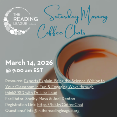 Access to our Saturday morning Coffee Chats is a perk of membership with TRL-IN. Join or renew your annual membership today! If you are unsure of your membership status with TRL-IN, please email natalie@in.thereadingleague.org and she will look into it for you.